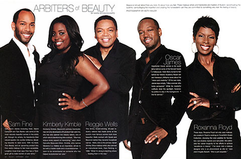 As if working on two out of four supermodels for the cover of Ebony wasn't enough, I was photographed alongside fellow hair and makeup colleagues Roxanna Floyd, Reggie Wells and hairstylists Kim Kimble and Oscar James for a beauty portfolio entitled, The Arbiters of Beauty.